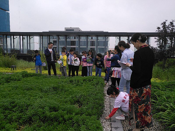小朋友及家長參觀新城海綿城市綠色屋頂