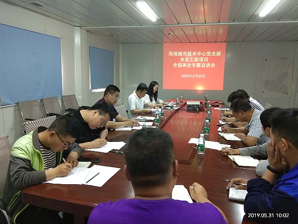 5月31日,海綿城市技術(shù)中心黨支部走進(jìn)新渭沙濕地工程項(xiàng)目部開展水務(wù)工程項(xiàng)目全國(guó)兩會(huì)精神宣貫暨掃黑除惡專項(xiàng)斗爭(zhēng)宣講會(huì),各項(xiàng)目施工單位、監(jiān)理單位項(xiàng)目經(jīng)理及工人代表參加會(huì)議。