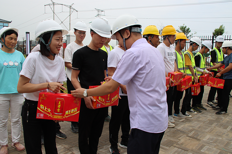 會(huì)議結(jié)束后,蘇小亮帶隊(duì)赴項(xiàng)目現(xiàn)場(chǎng)慰問(wèn)一線人員,向工作人員送去慰問(wèn)和感謝,囑咐大家做好防暑降溫措施,合理安排工作作息,注意身體健康。
