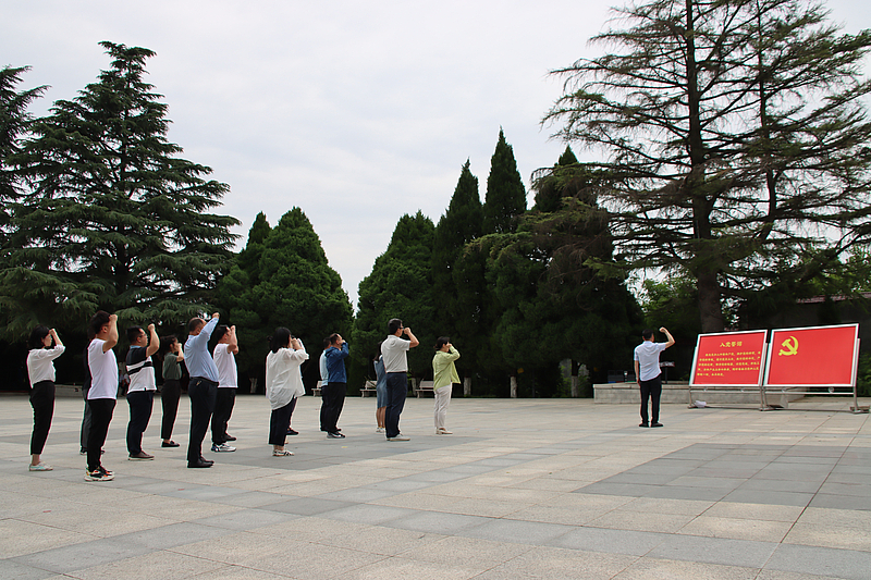活動中,參加人員在渭華起義烈士紀念碑前舉行莊重的紀念儀式,大家齊唱國歌,繞碑獻花,深切緬懷革命先烈,在鮮紅的黨旗下,重溫入黨誓詞,接受革命精神洗禮。
