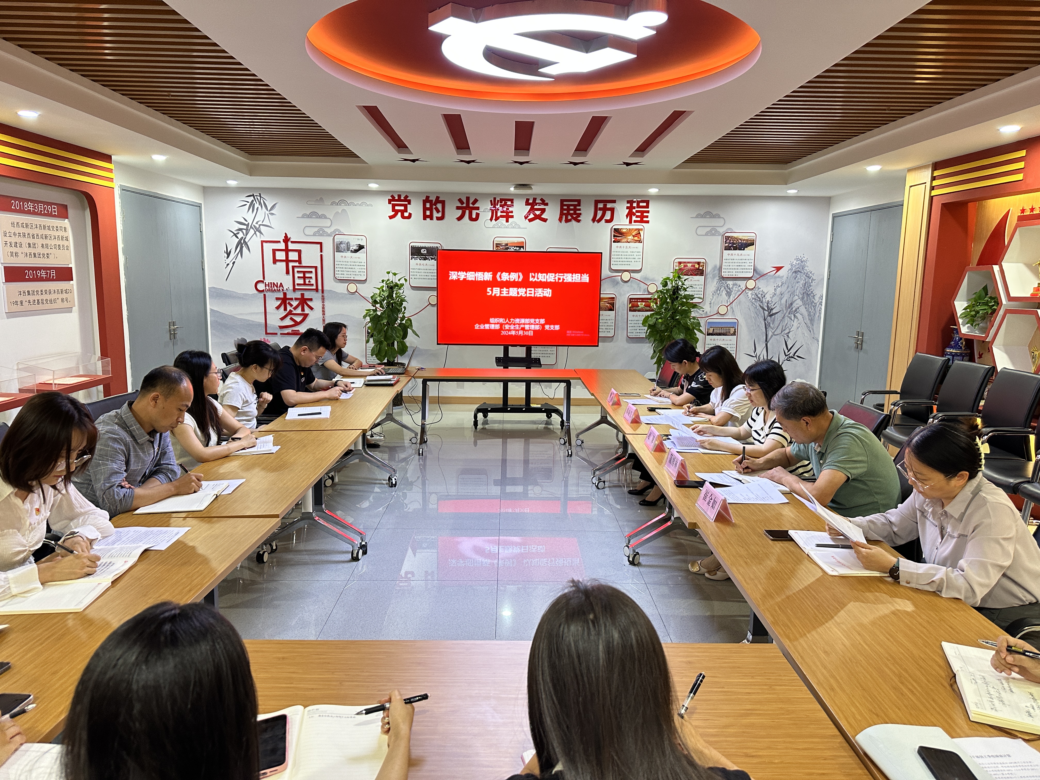 為深入學習貫徹落實習近平總書記關于黨紀學習教育的重要講話和重要指示精神,引導廣大黨員干部學紀、知紀、明紀、守紀,促進黨建與業務深度融合,實現優勢互補,開創合作發展的新局面。5月30日下午,組織和人力資源部黨支部聯合企業管理部(安全生產管理部)黨支部開展“深學細悟新《條例》 以知促行強擔當”5月主題黨