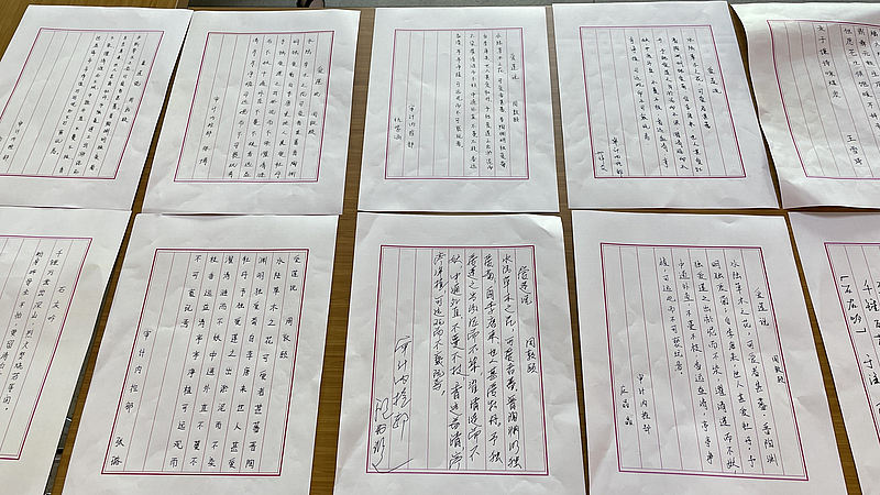 此次特色活動得到大家的積極響應(yīng),活動現(xiàn)場大家一字排開,摘抄有關(guān)廉潔自律的詩詞,所寫字體或大氣,或清秀,盡其所能地展現(xiàn)自身硬筆書法才能。活動結(jié)束后,大家紛紛表示,這次清廉主題書法競賽活動為大家上了一堂生動的廉潔文化課,書寫廉潔詩詞不僅能讓人感受到中國漢字文化的藝術(shù)魅力,又能對人的思想和行為進行警醒和鞭策,時刻提醒自己要守住底線。