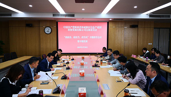 3月30日,信息產(chǎn)業(yè)園公司在第一會(huì)議室召開“講政治、敢擔(dān)當(dāng)、改作風(fēng)”專題教育會(huì)議暨專題黨課。