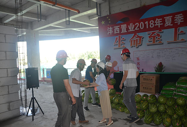 近期持續(xù)高溫,又正逢施工高峰期,為落實(shí)公司以人為本的管理理念,確保一線施工人員暑期施工安全,7月25日上午,陜西省灃西置業(yè)有限公司開(kāi)展2018年夏季“送清涼、促生產(chǎn)”活動(dòng),為公司在建項(xiàng)目送去防暑降溫品,把對(duì)施工人員的關(guān)心關(guān)懷送到項(xiàng)目一線。