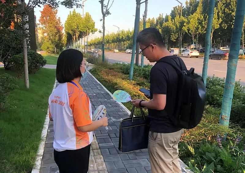 在一次志愿服務期間,她看到一名農民工師傅下班路過西部云谷二期站崗亭時,想要上前咨詢但又滿臉羞澀遲遲沒有開口,王寶花主動迎上前詢問情況,原來是農民工師傅想為他的孩子買一個十四運紀念品。她主動留下這名群眾的聯系方式,并告知其購買地點,同時為他贈送了十四運會紀念扇,并約定待志愿服務結束后可以將自己的志愿服裝送一件給小朋友。樸實的笑容綻放在師傅的臉上,他連連說道:“你們是優秀的志愿者,給咱西安爭光咧!”