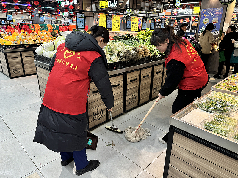 學雷鋒做公益,助推招商引資。青年志愿者們走進商鋪,助力全員招商,來到合作密切的宏聚客超市、大秦果果商鋪,做一些清潔衛(wèi)生、陳列產(chǎn)品等力所能及的事,為商鋪運營增添一份力量,積極營造良好的營商環(huán)境。