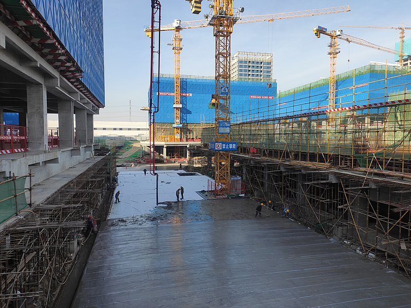 曹家灘創新中心項目1號樓附樓負一層主體結構施工完成、主樓負一層完成90%,2號樓及西側車庫筏板施工完成、負二層主體施工完成,3號樓筏板基礎完成、負二層主體結構完成,7號樓、8號樓負二層主體結構完成。