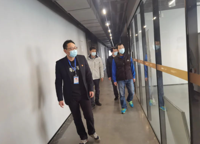 陜西省人工智能暨硬科技加速基地,黨員李慶華、王洪向孵化企業(yè)與合作伙伴宣傳疫情防控知識,帶頭做好防疫宣貫。