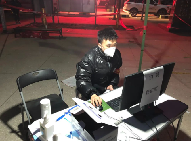 新旺村核酸檢測點,黨員張建偉主動幫助老年人下載一碼通,一遍又一遍地指導(dǎo)。
