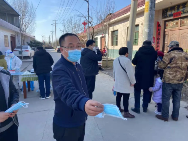 河頭村核酸檢測點,黨員魏廣樂引導(dǎo)村民保持一米間距,戴好口罩,做好自身防護。