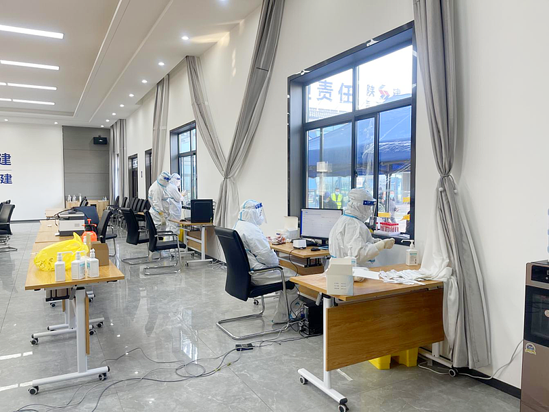 在房建項目現(xiàn)場,由房建項目部19人組成疫情防控青年突擊隊,赴一線開展各項防疫工作,督促各參建單位啟動疫情防控專項方案,協(xié)助醫(yī)護人員完成核酸采樣工作,并對每輪核酸檢測結(jié)果進行統(tǒng)計、審核、報送。