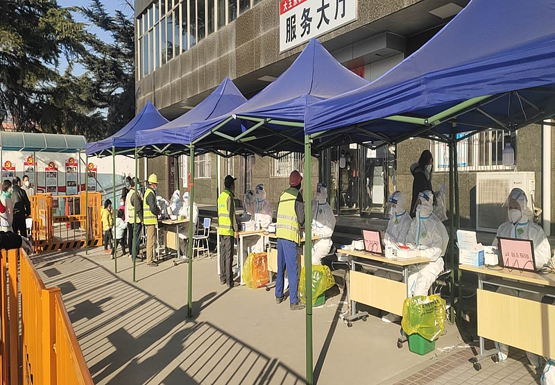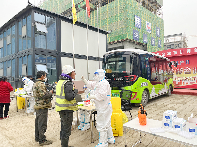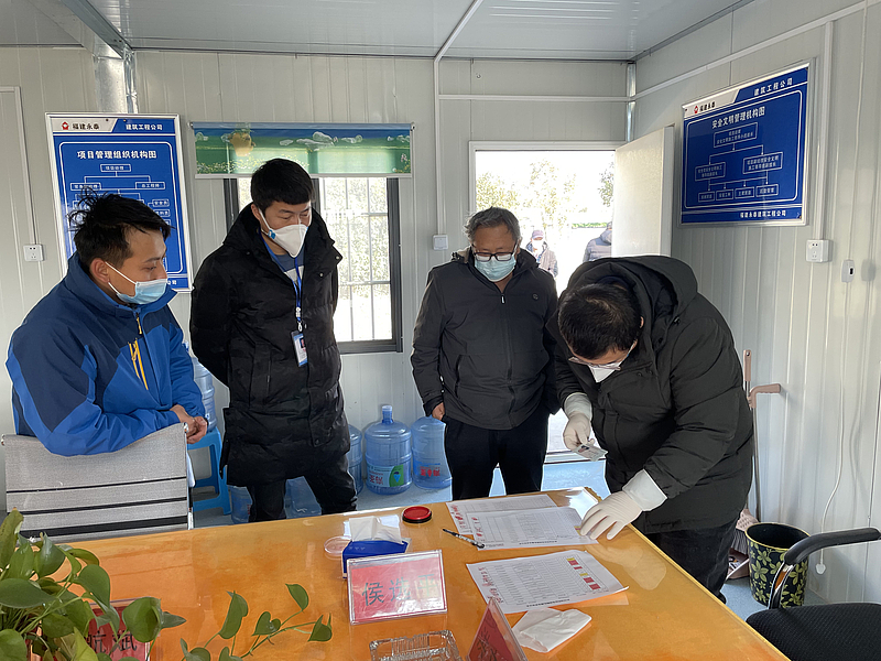 在秦創(chuàng)原生態(tài)科創(chuàng)島項目項目現(xiàn)場,全面落實封閉管理措施,組織施工單位實行分單元模塊化管理方式,采取工人錯峰就餐、分批次核酸檢測等多項措施,并積極做好疫情防控物資儲備及發(fā)放工作。