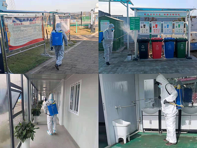 配齊防疫帳篷、體溫計和消毒劑等防疫物資,每日安排專人對辦公區(qū)域、門禁區(qū)等公共區(qū)域和住宿區(qū)進行消殺,并張貼消毒記錄表,做到病毒消殺無死角。