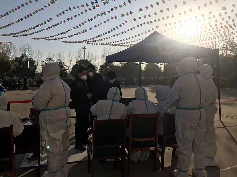 柴良革在新旺村幫助村民登記核酸檢測信息