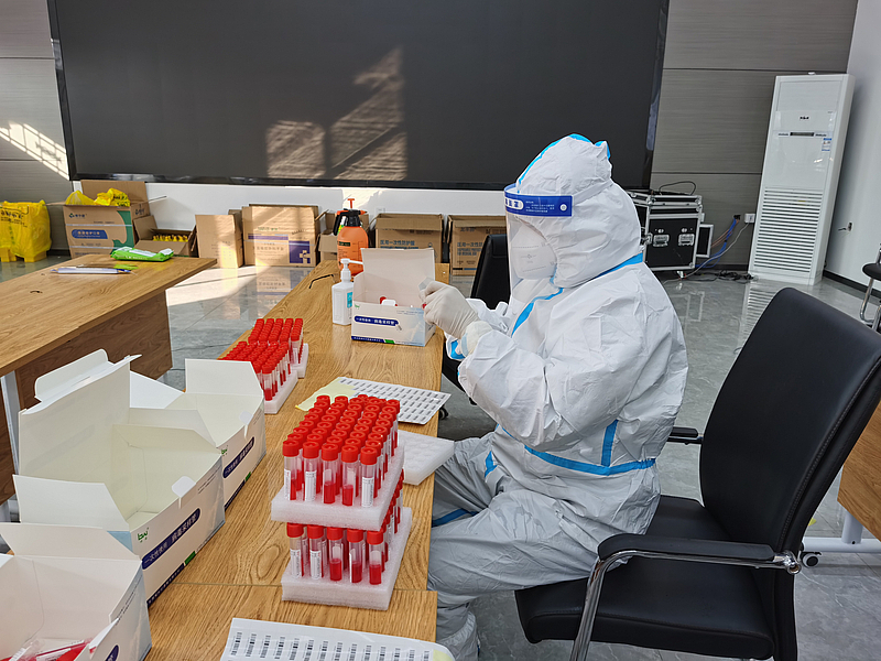 “困難不可怕,只要我們從一點一滴做起,一切困難都是紙老虎!”具備防疫工作經驗的他主動穿上防護服,嚴格按要求進行試管條碼張貼、醫廢處置等工作,很大程度上減輕了醫護人員的工作負擔。“人員太緊缺了,能多干一點就多承擔一些。”他主動承擔了物資補給協調,醫護人員行程、就餐安排等工作。