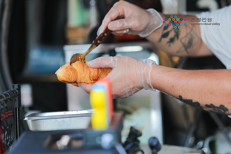 后備箱打開,掛配一塊天幕、一排椅子,再配上小夜燈……現場除了樂隊歌手、觀眾,現場還停放了很多車輛。一個氛圍感十足的移動咖啡館、移動奶茶店就此營業。掛著小彩燈的小型汽車整齊停放,車主們將自己的后備箱精心裝飾后擺上咖啡、奶茶、蛋糕等消費品供前來聽音樂節的嘉賓選購,“后備箱集市”吸引了不少目光。