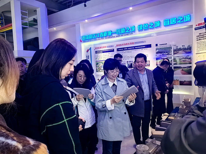 調(diào)研團(tuán)一行通過講座形式了解了西咸新區(qū)海綿城市建設(shè)經(jīng)驗(yàn),隨后到灃西新城海綿城市展廳、中心綠廊、豐邑大道等項(xiàng)目,實(shí)地參觀了新城海綿城市技術(shù)應(yīng)用、建設(shè)成果以及創(chuàng)新城市發(fā)展方式典型項(xiàng)目。