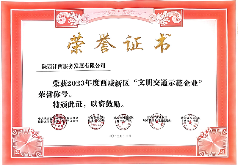 近日,西咸新區(qū)黨工委文明辦、市公安局西咸新區(qū)分局、西咸新區(qū)教育體育局、西咸新區(qū)城市管理和交通運(yùn)輸局、西咸新區(qū)基層工作部等部門(mén)在全區(qū)聯(lián)合開(kāi)展“文明交通示范集體和先進(jìn)個(gè)人”創(chuàng)建評(píng)選活動(dòng)。經(jīng)評(píng)審,灃西集團(tuán)服務(wù)公司榮獲2023年度西咸新區(qū)“文明交通示范企業(yè)”榮譽(yù)稱(chēng)號(hào)。