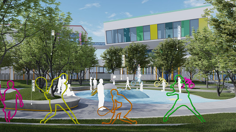 健康激情:在立面設(shè)計(jì)上,秦創(chuàng)原生態(tài)科創(chuàng)島體育村落采用清新明亮的色彩,整體配色采用暖色調(diào),與墻面和諧統(tǒng)一,局部采用冷色作為點(diǎn)綴,整體設(shè)計(jì)大氣活潑。