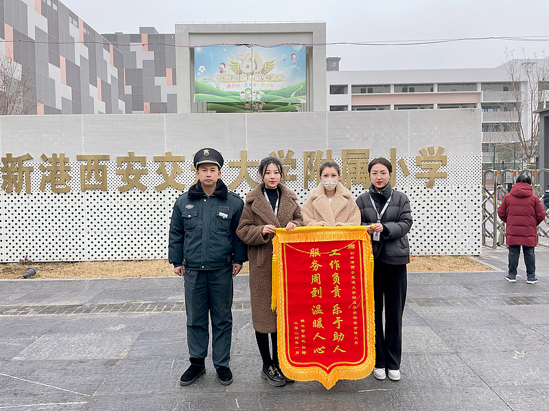 西咸新區灃西新城第二學校執行校長權小紅一行將一面印有“真情服務盡心盡責,忠于職守情暖師生”的錦旗送到了服務公司,對服務公司在學校片區細致入微、盡職盡責的高品質服務表示由衷肯定和誠摯感謝。創新港西安交通大學附屬小學一名學生家長將一面印有“工作負責 樂于助人,服務周到 溫暖人心”的錦旗送到了服務公司,感謝服務公司學校片區工作人員一直以來對孩子們的關心與呵護。