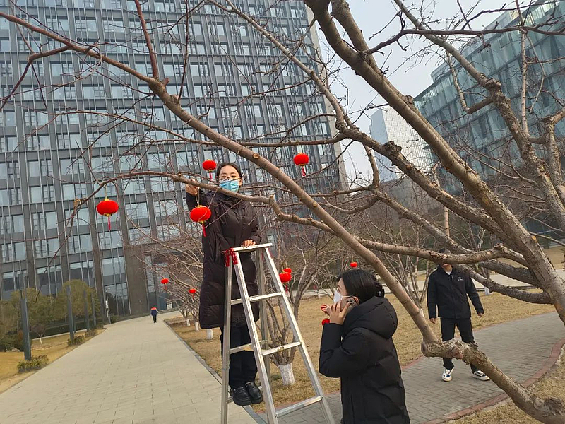 春節前夕,公司各項目為小區、公園、學校、園區“畫新妝”,掛燈籠、貼裝飾,貼福字......“年味”從一點一滴的布置中洋溢開來,把美好帶給每一位業主。