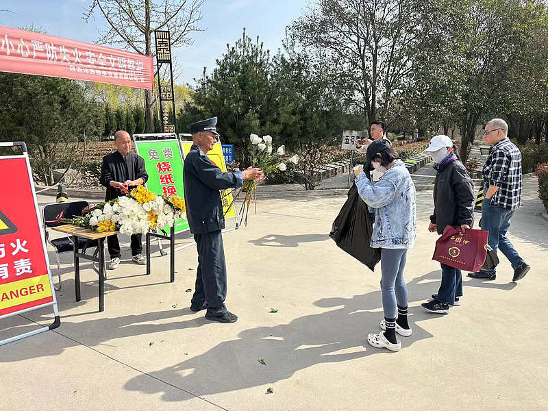 又是一年清明時,春風細雨寄哀思。為營造安全、文明、有序的祭掃環境,推進移風易俗,灃西服務積極貫徹綠色發展理念,引導陵園祭祀群眾文明祭掃,廣泛開展“無煙陵園”“鮮花換紙錢”等活動,以現代文明的表達方式傳承賡續中華民族慎終追遠的深沉情感。