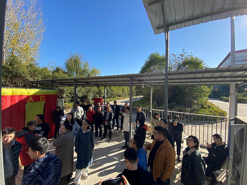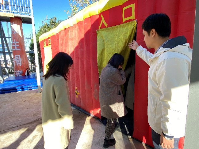第三階段逃生屋演練。逃生屋主要應用于隧道施工緊急避險、消防疏散演習及公共場所應急避難等場景。演練過程中,全體人員進入逃生屋內部,深入了解其布局結構與設施配備,通過在模擬環境中利用應急照明尋找安全出口,完成了一次逼真的逃生體驗,進一步增強了在復雜環境下的應急逃生能力。