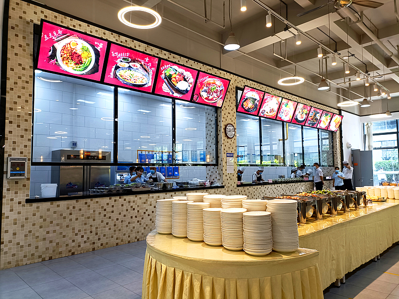 多樣化現(xiàn)代餐飲服務:自主運營員工餐廳5家+社會餐飲1家,外包監(jiān)管餐廳1家,餐廳均配備現(xiàn)代化廚房設備,從食材清洗到烹飪加工,全程遵循食品安全規(guī)范,用餐區(qū)設立有自助取餐區(qū)、快捷套餐區(qū),提供多樣化、標準化的品質服務。