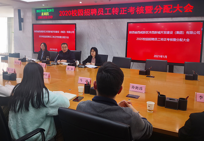 1月28日下午,灃西集團(tuán)召開(kāi)2020校園招聘員工轉(zhuǎn)正考核暨分配大會(huì),總經(jīng)理姜勤發(fā)出席會(huì)議并講話(huà)。
