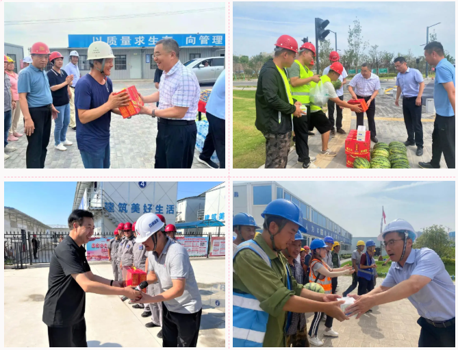 將學(xué)習(xí)貫徹“七一”重要講話精神與“我為群眾辦實事”實踐相結(jié)合,確保在安全生產(chǎn)、人文關(guān)懷等方面把實事辦實,把好事辦好。通過召開安全生產(chǎn)專題會,開展消防演練、電梯應(yīng)急演練等活動,為項目建設(shè)筑牢安全防線,保障群眾和員工生命財產(chǎn)安全。7月份以來,集團(tuán)公司主要領(lǐng)導(dǎo)先后5次帶隊前往集團(tuán)13個項目一線“送清涼”,向戰(zhàn)高溫、斗酷暑的一線員工和勞務(wù)工人送去清涼解暑的飲品、藥品、水果等防暑降溫物資。為確保轄區(qū)夏季高效供冷,能源公司第一時間解決施工方供電故障。物業(yè)公司為社區(qū)業(yè)主搶修故障管道,確保轄區(qū)群眾“清涼過夏”,收獲2面錦旗、1封表揚(yáng)信,將“七一”重要講話精神落到實處,真正為群眾解難題、辦實事。