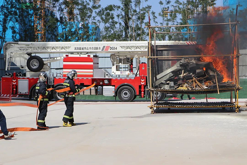 在高空墜落演練中,模擬了施工人員在施工過程中不慎墜落場景,現場應急指揮進行初步救治并聯系120將傷員送至醫院;在消防應急救援演練中,模擬了施工現場發生火災情景,項目人員運用滅火器初步控制住火勢直至消防人員抵達現場,將火災及時撲滅。整個演練過程按照預案進行,醫療救護、應急車輛、后勤保障、事故調查等應急處置各個環節井然有序。
