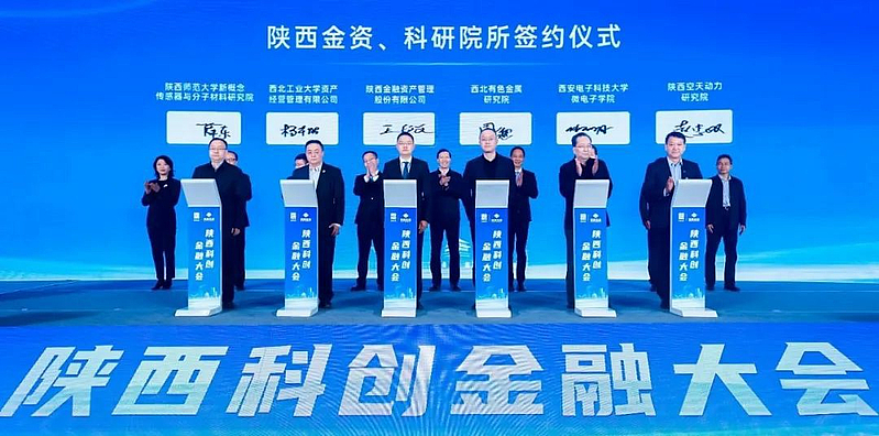 在簽約環節陜西金資分別與5家科研院所簽署合作協議。