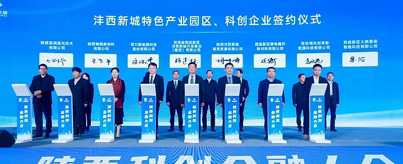 灃西新城特色產業園區與西咸新區大熊星座智能科技有限公司、西安領充創享新能源科技有限公司、西咸新區鋰電循環新材料有限公司、保力新能源科技股份有限公司、陜西精微新材料有限公司、陜西奧潤激光技術有限公司6家企業簽訂合作協議,將大力發掘以中國西部科技創新港—西安交通大學為主的優質高??萍汲晒椖客苿觾炠|科技成果加速轉化。