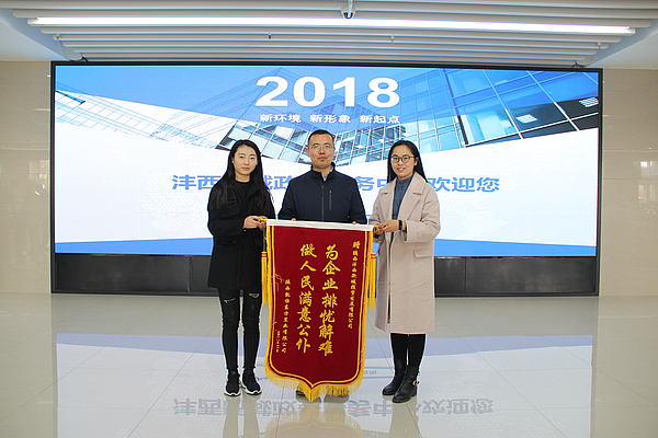 11月21日上午,隆橋瑞苑小區(qū)建設(shè)單位---陜西凱怡東方置業(yè)有限公司負(fù)責(zé)人把寫有“為企業(yè)排憂解難 做人民滿意公仆”的一面錦旗送到了灃西新城政務(wù)服務(wù)大廳,該企業(yè)對(duì)投資公司用水報(bào)裝辦理時(shí)效給予了高度的肯定,并對(duì)投資公司“五星級(jí)店小二”熱情優(yōu)質(zhì)的服務(wù)表示衷心的感謝!