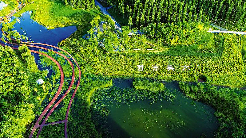 作為全國首批海綿城市建設試點地區,5年時間,灃西新城地下水位回升了3.43米,實現了“大雨不內澇、中雨不積水、小雨不濕鞋”。中心綠廊被稱為灃西新城的“翡翠項鏈”,對轄區內氣候調節起著無法估量的作用,也為綠色發展貢獻著不可小覷的價值。