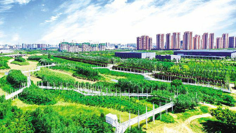 灃河治理僅是灃西治理的縮影。水穿城過,生生不息。2020年,蜿蜒流經灃西新城內的灃河水質平均達到Ⅱ類,新河入渭斷面水質已達到Ⅳ類。清風徐來,滿目青綠。2020年,灃西新城新增城市綠地面積77.43萬平方米,建設一二級綠道24.6千米、社區綠道20千米,完成屋頂綠化4000平方米以及3座綠地廣場、口袋公園建設。