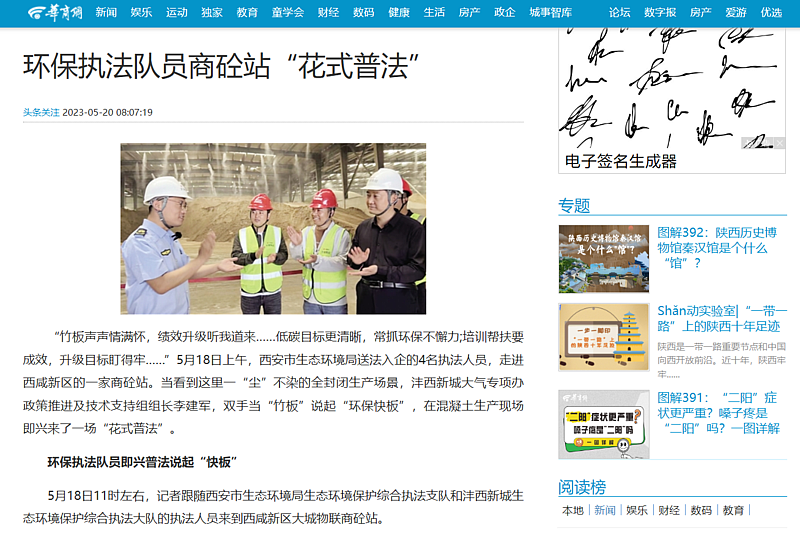 學習強國、西安日報、三秦都市報、華商網:揚起雙手當“竹板” 即興普法說“快板” 環保執法“花式普法”有新意