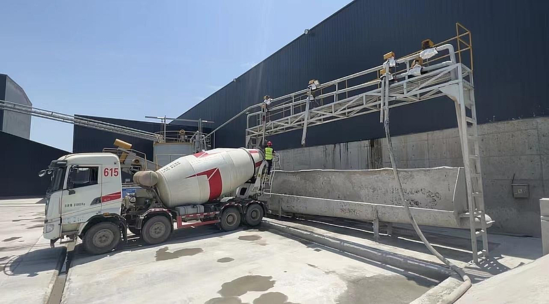 姚曉東告訴記者,他們這個商砼站總共有4條混凝土生產線,年產量高達100-150萬方。如此大的生產量能做到一“塵”不染,都歸功于2000多萬元的環保設施投入。“整個生產線采用全部封包,防塵降噪,主機和粉料采用強制式脈沖自動除塵器,有效防止粉塵外漏。全封閉的料倉,進出口為自動感應門,車輛進出料倉自動感應達到快速關閉,料倉內的自動噴淋系統,有效降塵覆蓋率達到98%……”